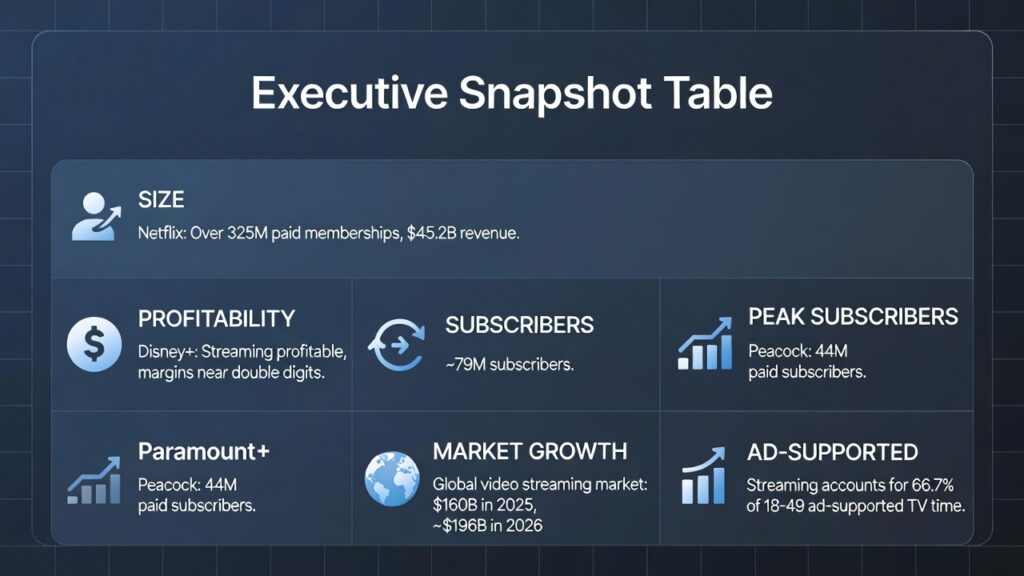 - Global Video Streaming Market: ~$160B in 2025 → projected ~$196B in 2026 (CAGR ~18-21%, fueled by FAST/AVOD explosion).